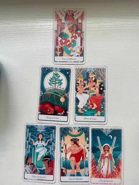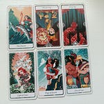 Welcome to our July Tiny Monthly Reading! This month is about balance, options and aggression. We pull cards for our reading but I also added in some charm casting! Below is a gallery of our cards and charms for the month. And if you’d like to read the reading instead, just click the Transcript button at the top of the page.